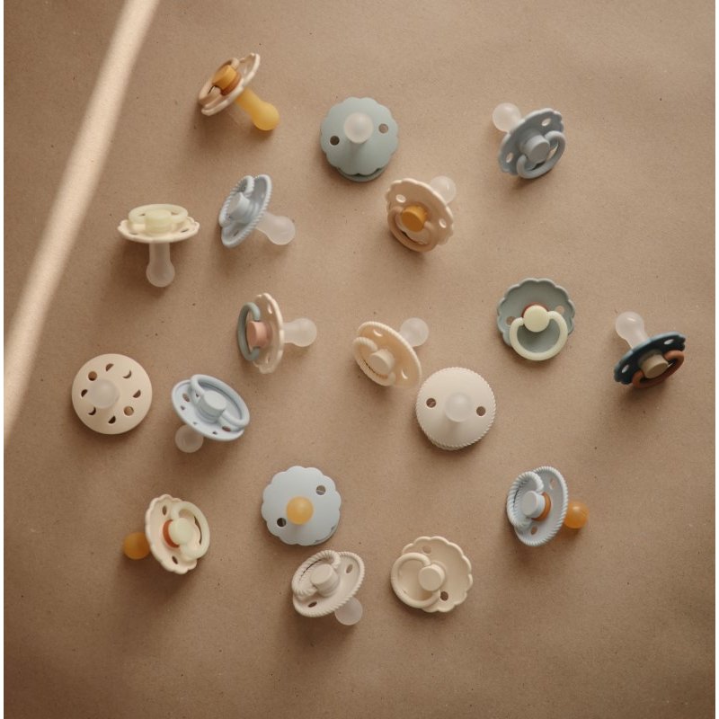The FRIGG Daisy pacifier full of charm is available in both monochrome and mixed colors.