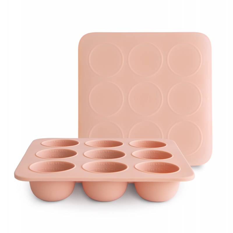 Freeze portions of baby food in Mushie’s baby food freezer tray!It’s perfect for storing food and milk for the little ones, and it will simplify the whole prepwork process for parents. The soft silicone base allows you to easily pop out the frozen baby food, and the clear plastic lid prevents spills and protects food from odors.