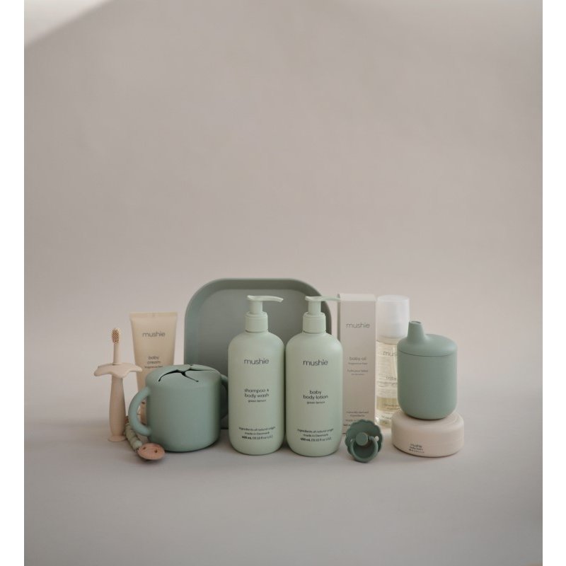 Mushie’s shampoo & body wash is uniquely developed for the delicate skin and scalps of babies and children. The gentle formula prevents dehydration while it softens and moisturizes the skin and scalp. The fresh Green Lemon scent adds a citrus note to bath time routine and leaves the skin feeling naturally clean.