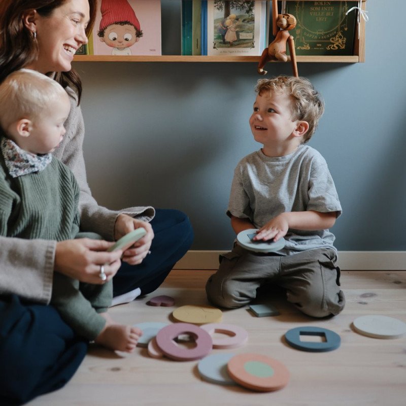 Transform bath time into an exciting learning adventure with Mushie's foam geometric puzzle.