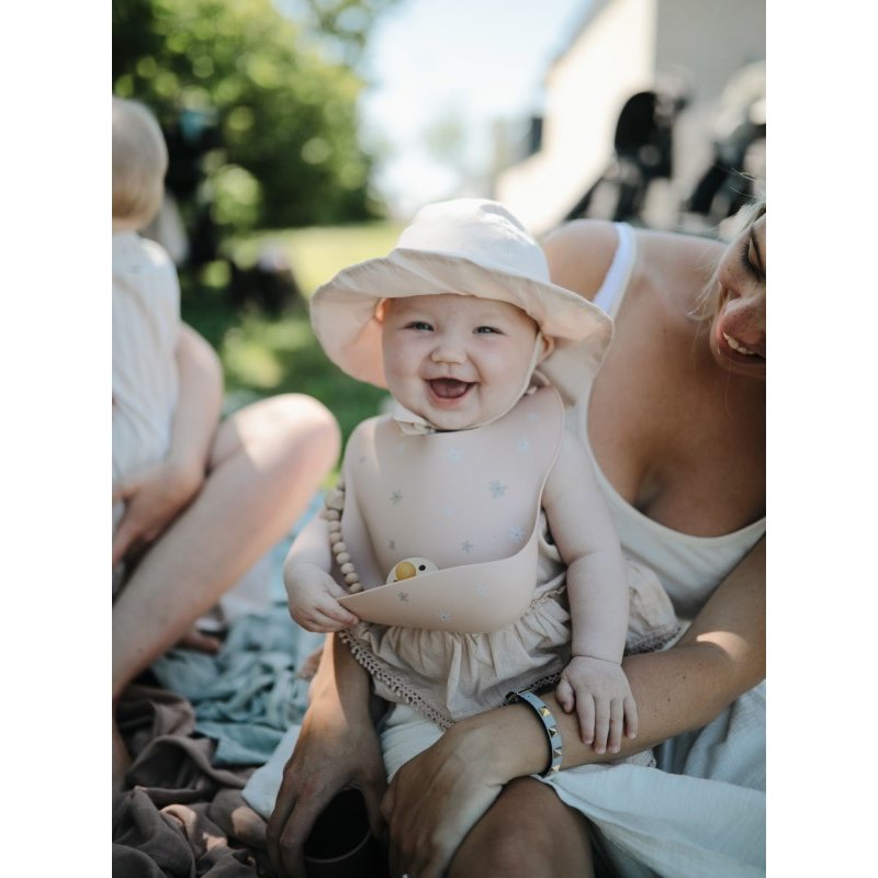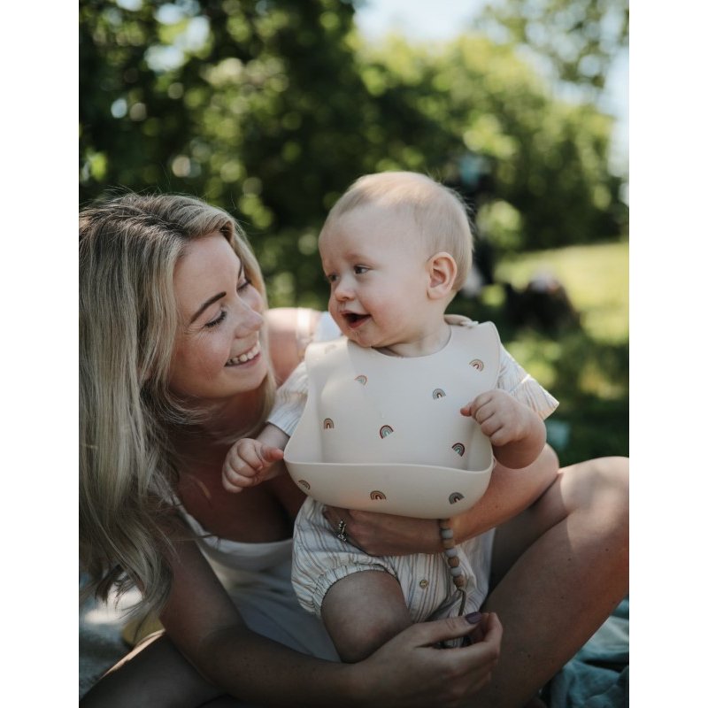 The collection of silicone bibs from Mushie is fun, timeless, and colorful in various designs. Find the style that fits your taste and style.